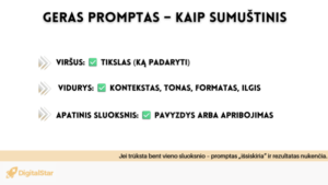 DI promptų optimizavimas – tai būdas kalbėtis su dirbtiniu intelektu efektyviau, gauti labiau atitinkantį atsakymą, sumažinti iteracijų kiekį ir taupyti laiką.